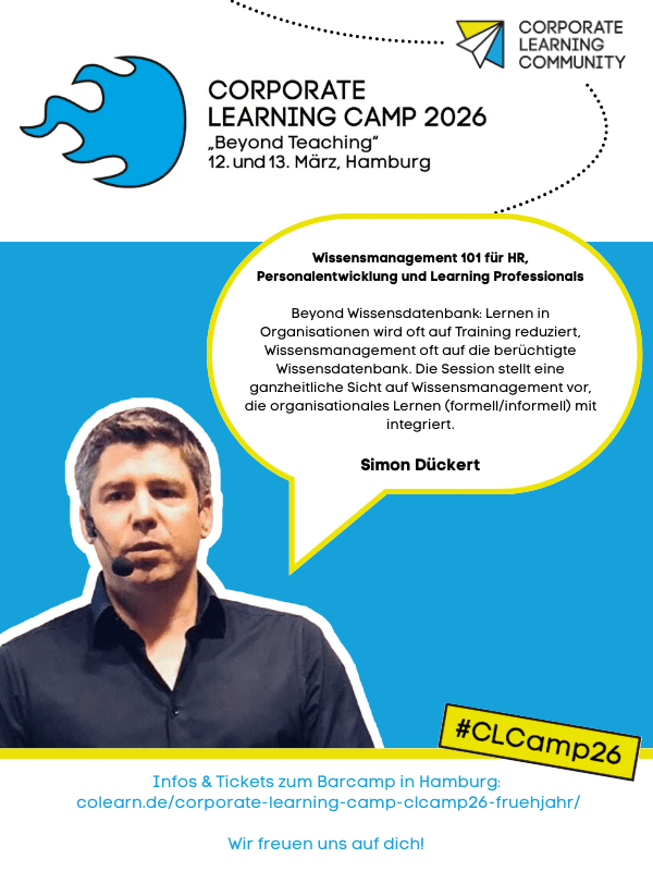 - 12.-13.03.2026 – Corporate Learning Camp 2026 „Beyond Teaching“ (#clc26) in Hamburg und Online